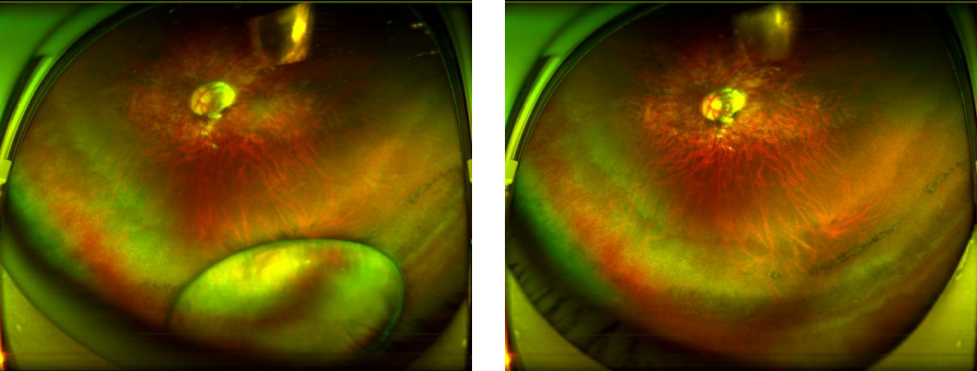 图:王先生术前(左)术后(右)眼底广角照相图