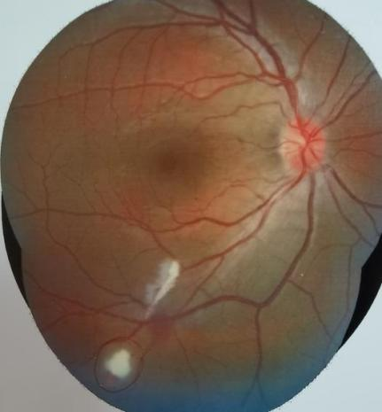 小尼(化名)在和同事打羽毛球时不慎右眼被弹回的羽毛球击伤,当时即出现右眼视力下降、眼红、流泪等不适,立即到市内附近医院检查后诊断为“右侧视网膜出血、右眼玻璃体积血、右眼黄斑裂孔?”,给于收入院予用营养神经、改善循环等对症药物治疗。