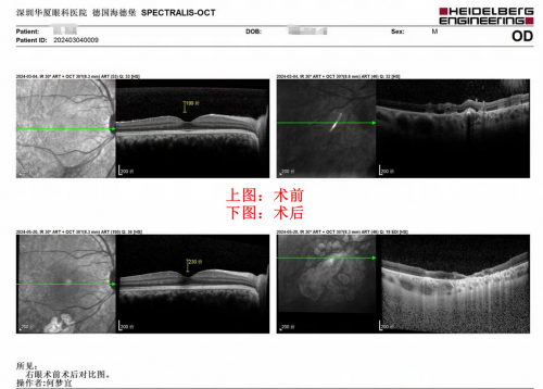 小黄手术前后黄斑和异物床追踪扫描图